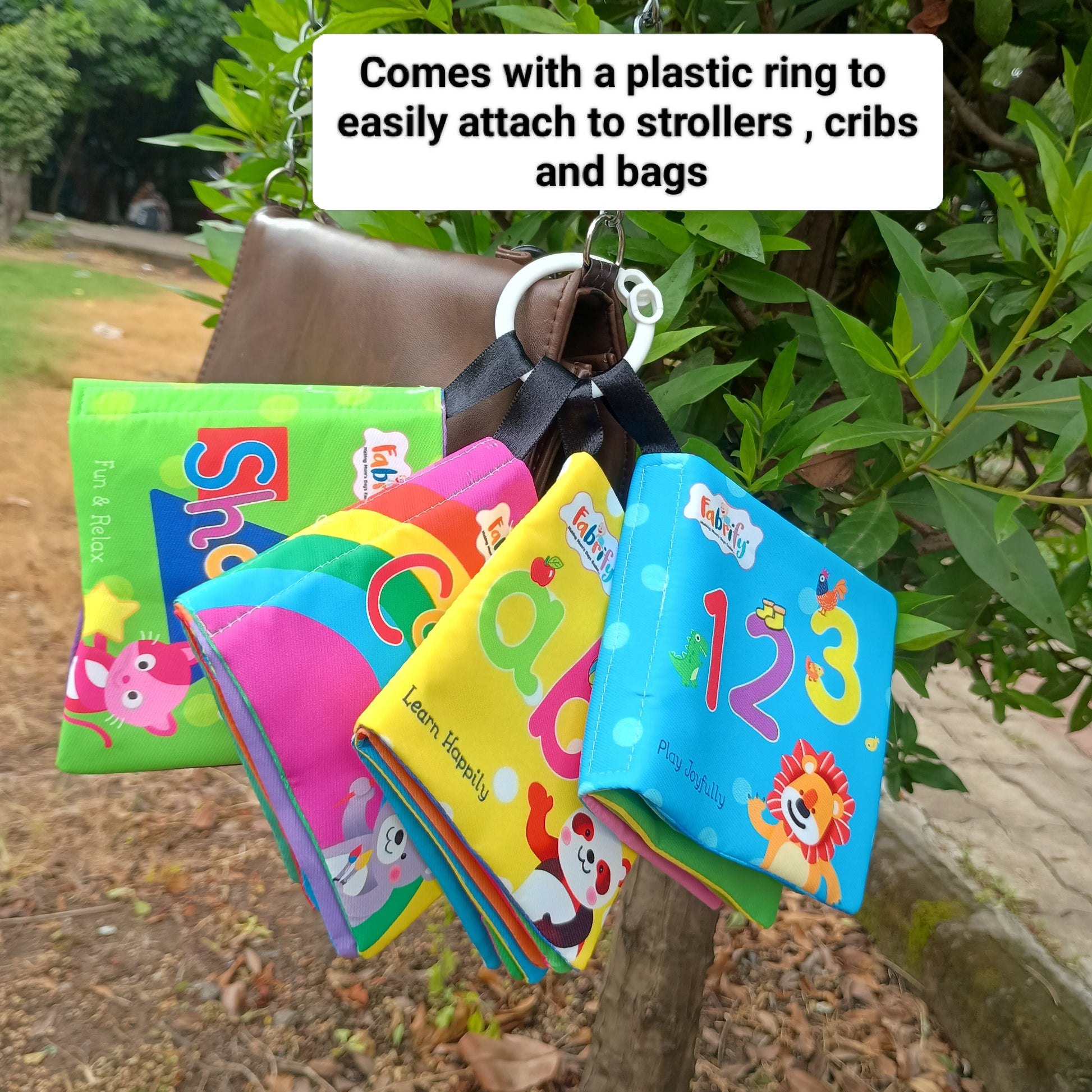 ✅ Easy to Carry – Comes with a plastic ring to attach the book to strollers, cribs, or diaper bags.